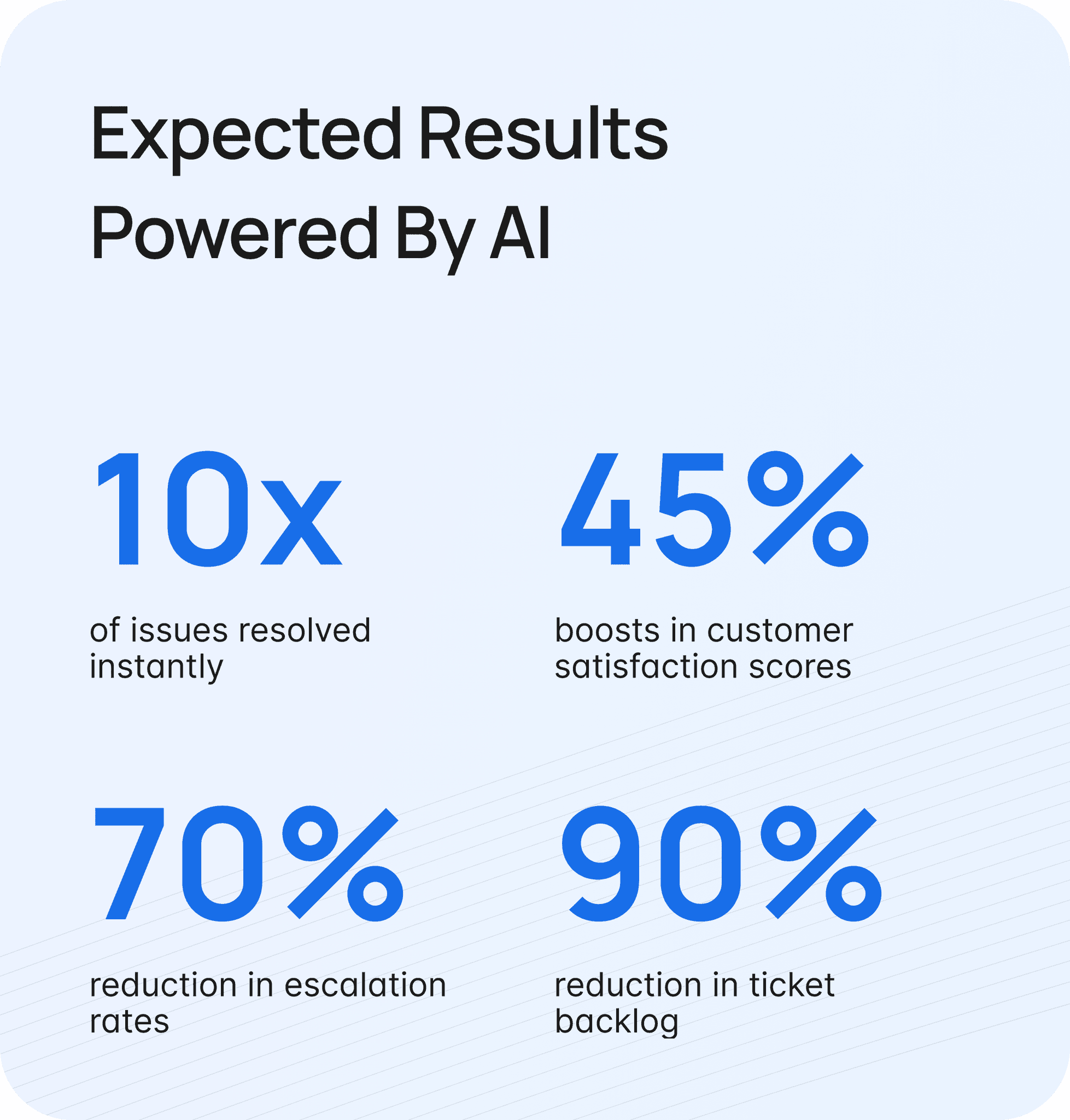 I handle repetitive queries, resolve issues in seconds, and provide personalized support 24/7, so your team can focus on delivering exceptional experiences