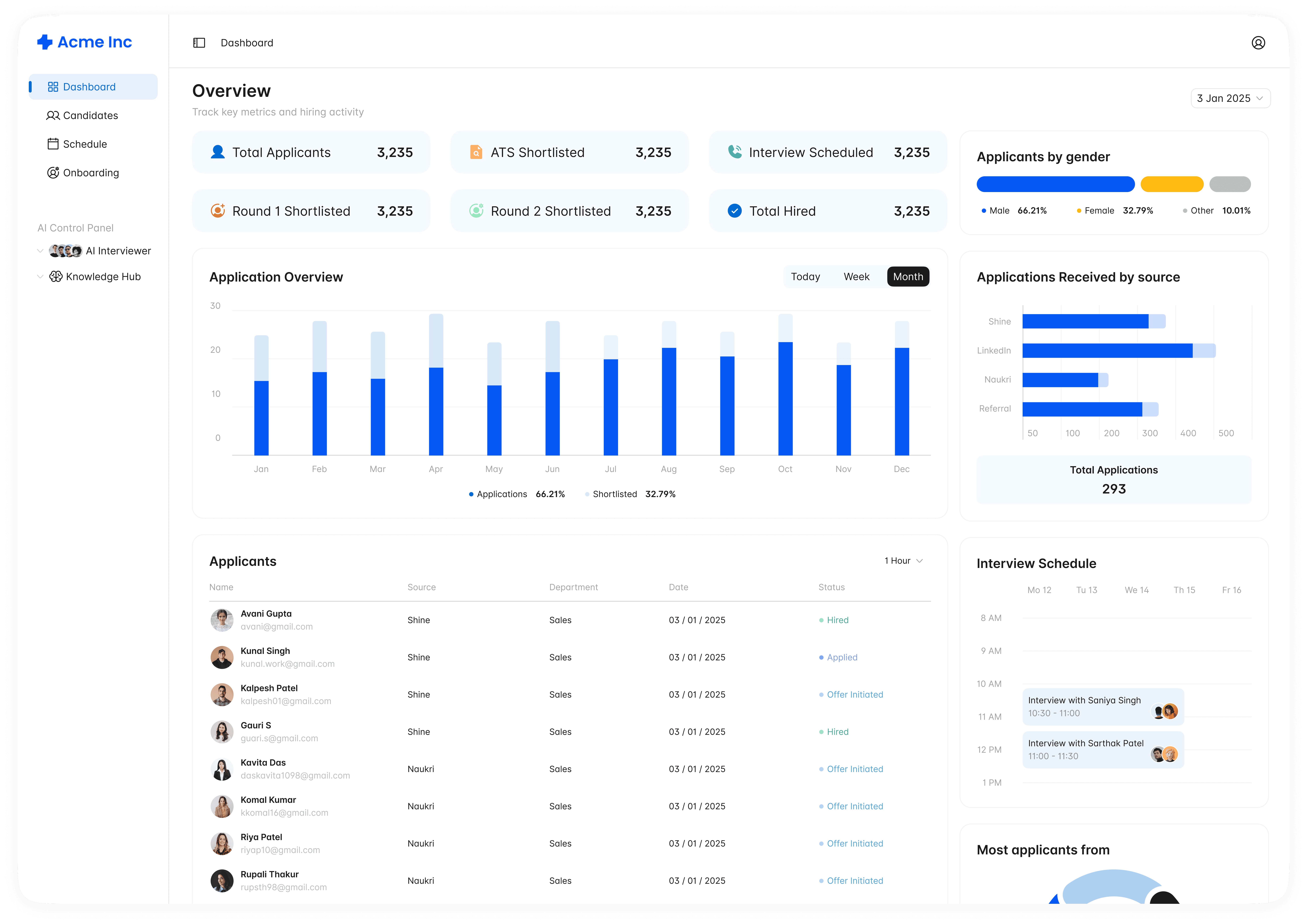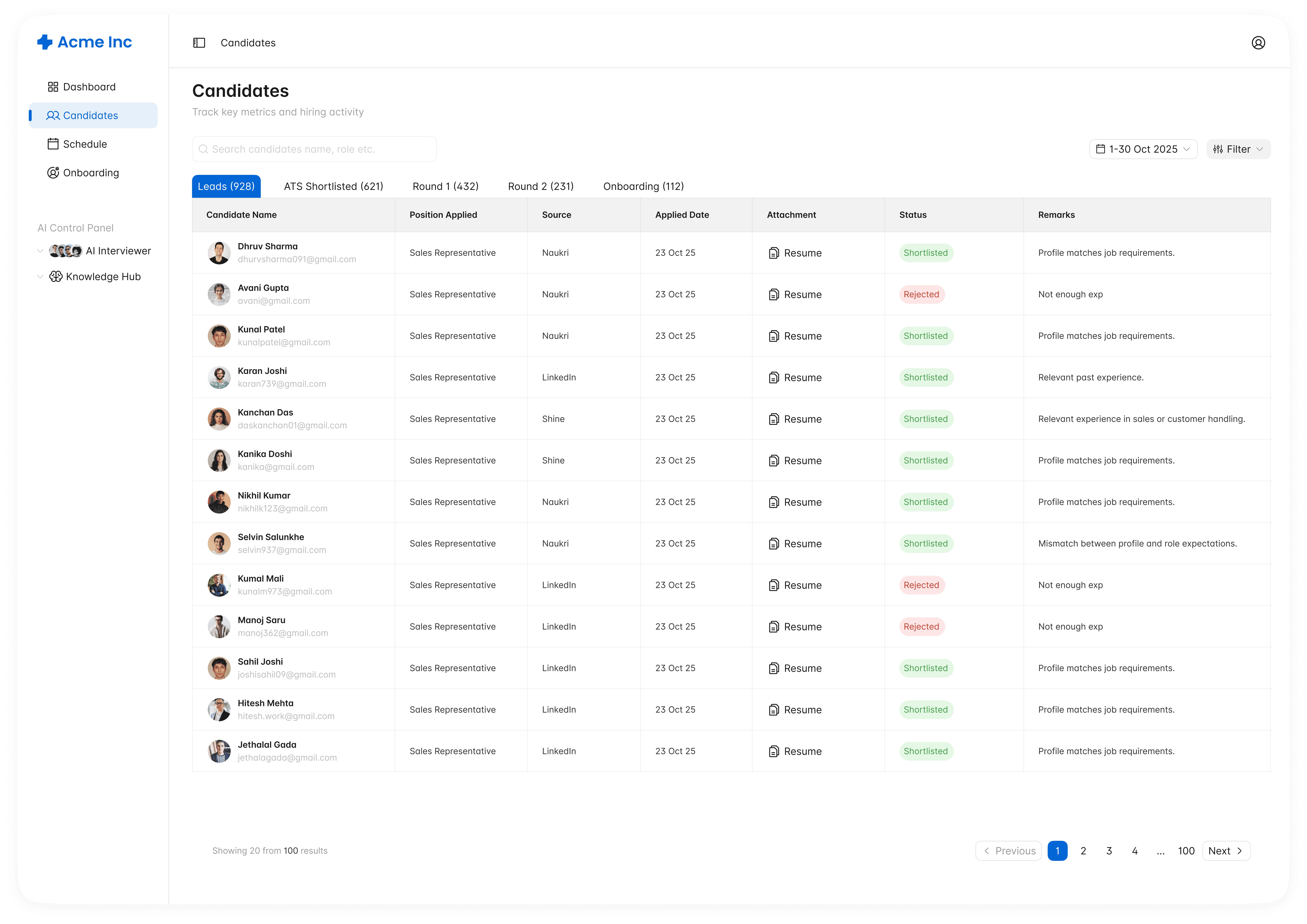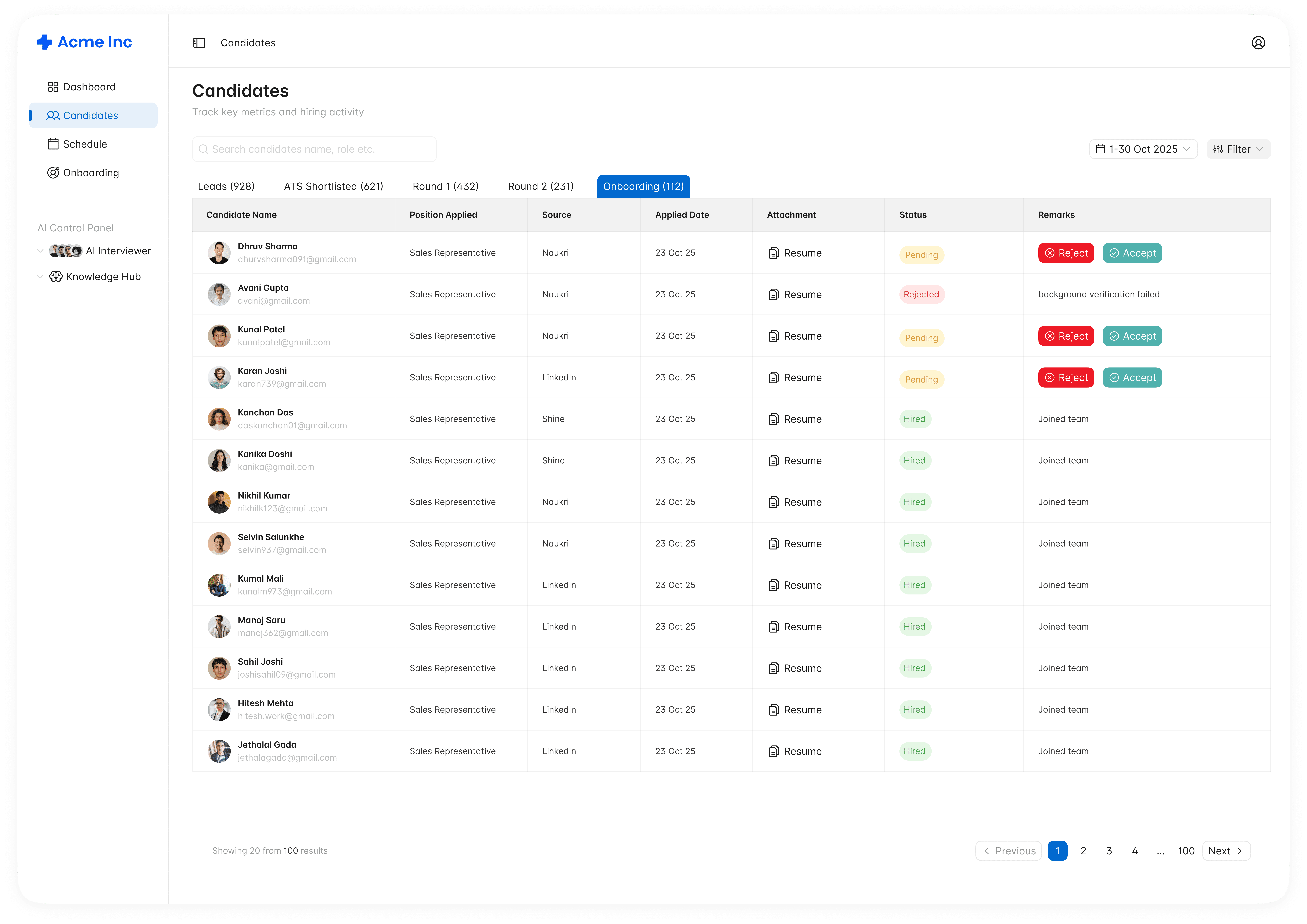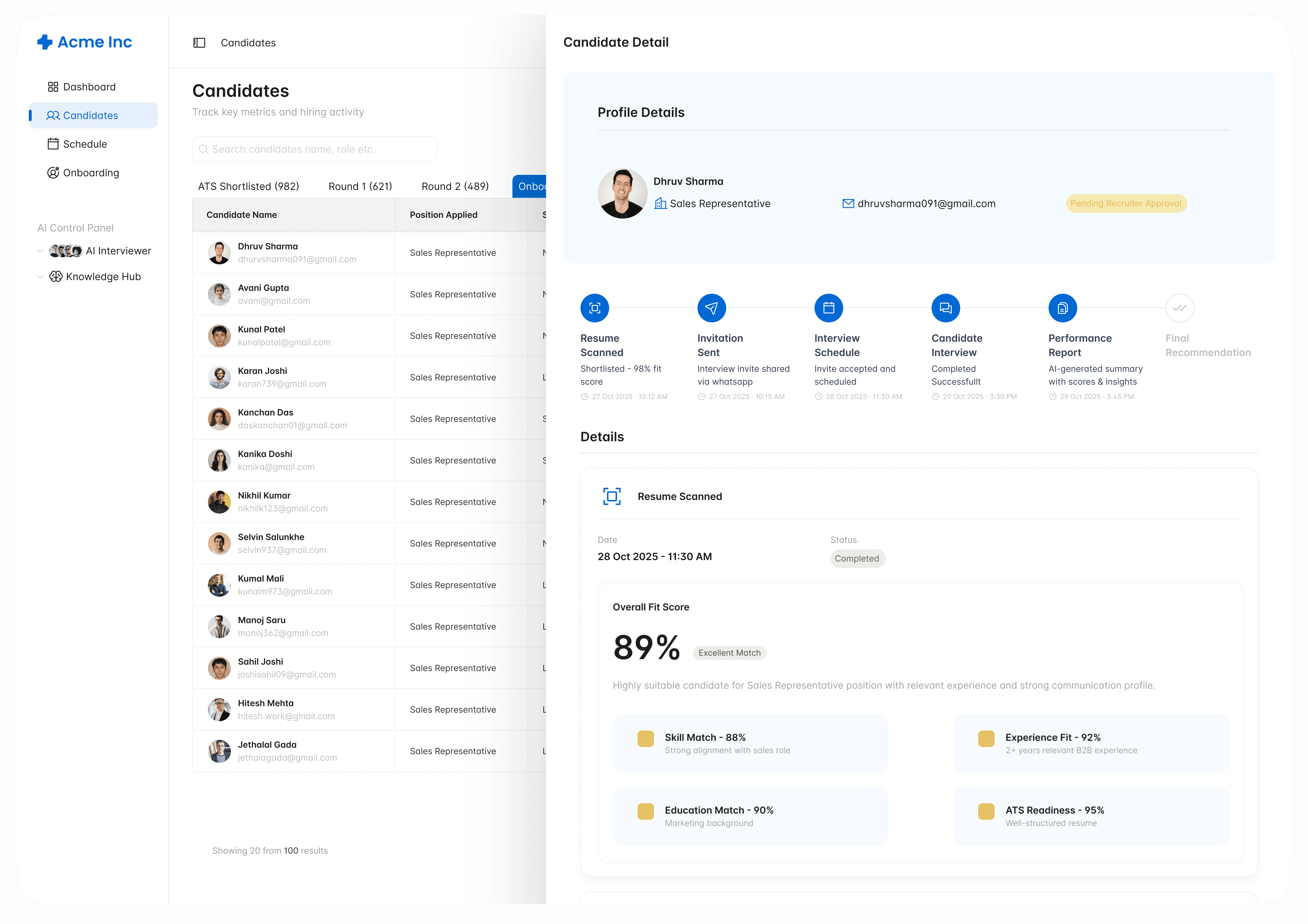 Gemma is your AI Interviewer built to evaluate, not just filter. She conducts structured interviews, designs custom assessments, and ranks candidates across multiple performance and behavioral parameters. Once a candidate clears her evaluation, she routes it for managerial approval and upon selection, crafts a personalized onboarding journey for them